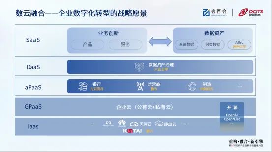 郭为强调,AIGC进一步强化了数据资产对企业数字化转型的重要性,其指出企业数字化转型战略的核心就是不断扩大数据资产规模。企业如何实现数据资产的不断增长?数云融合的体系构建,将成为支撑数据资产不断积累和增长的关键。因为在数字时代,“云”实现了对数字的链接和融合。
